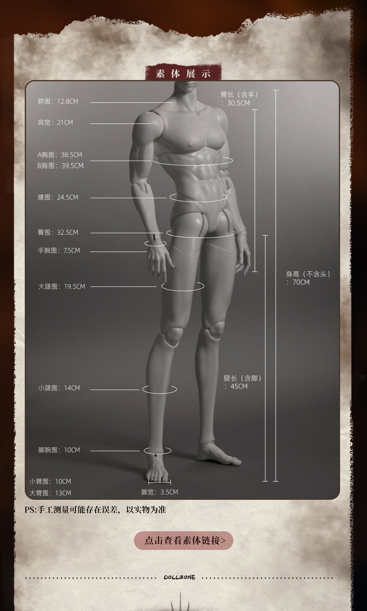 Height (excluding head): 70cm